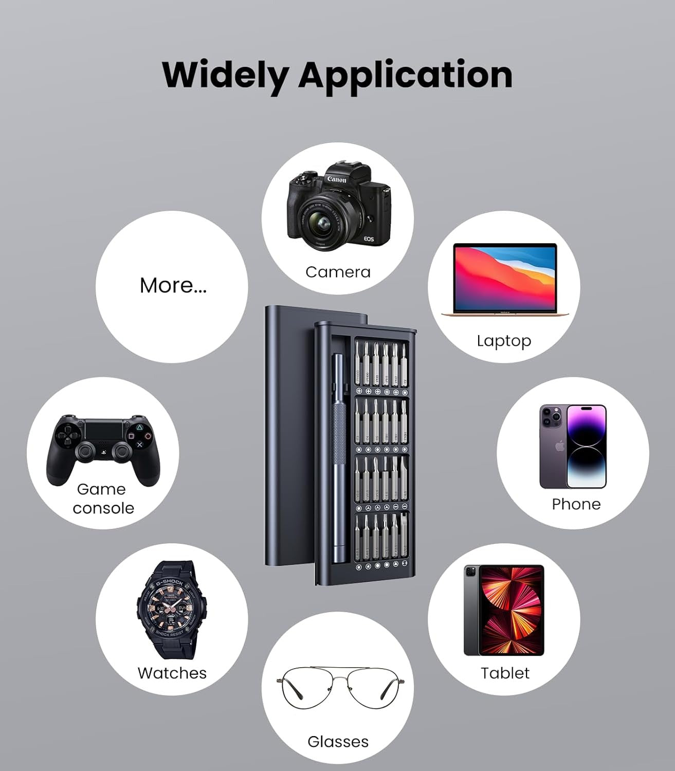 Includes 24 precision magnetic bits tailored for smartphones, laptops, PCs, tablets, cameras, smart home devices, and more. One compact kit—endless repair possibilities.