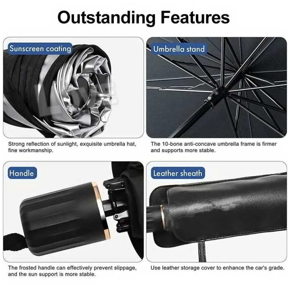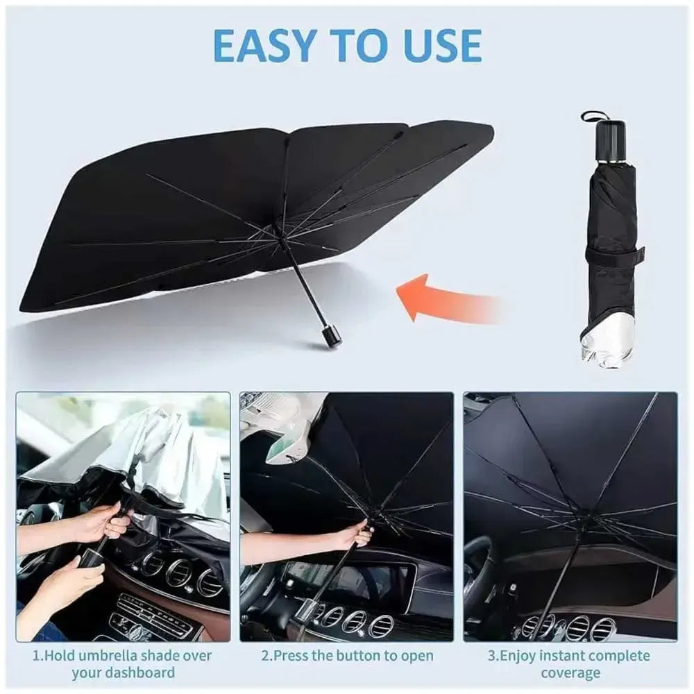 Protect your car interior and keep it cool with our Car Umbrella Sun Shade Cover, specially designed for the front windshield. This innovative sunshade works like an umbrella – quick to open, fold, and store – making it the perfect solution for hot summer days.